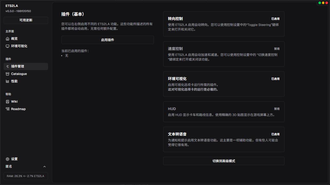 ETS2LA官方不对这些插件的内容以及所引发的问题负责,一切均由用户自己负责