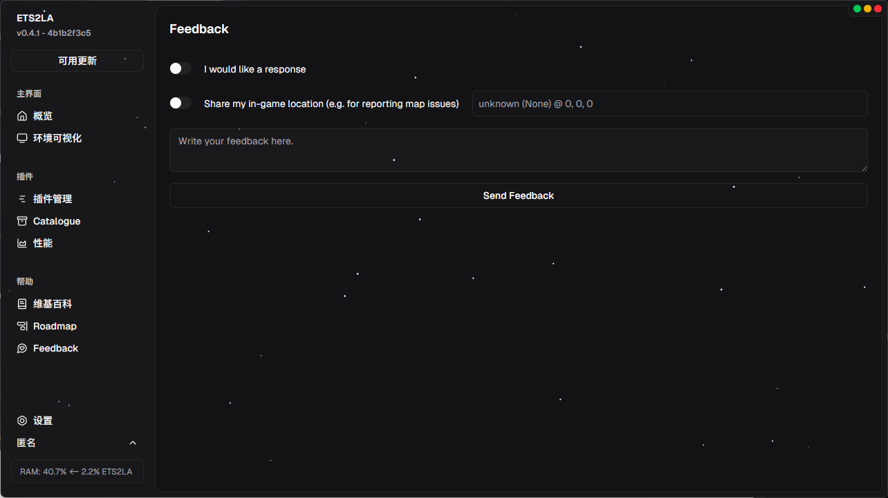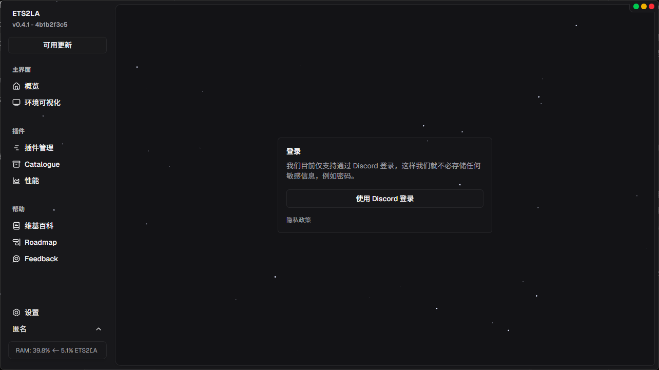 点击设置下方的匿名皆可进行登录,目前ETS2LA仅支持通过Discord登录,其余不支持