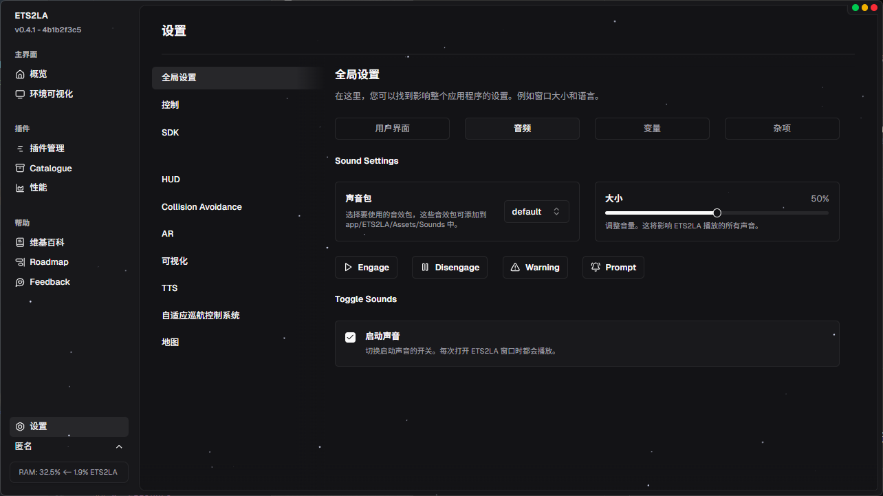 所有有关ETS2LA的设置都在这个页面,这个页面也是一个比较重要的页面,接下来我们就来详细介绍介绍设置页面