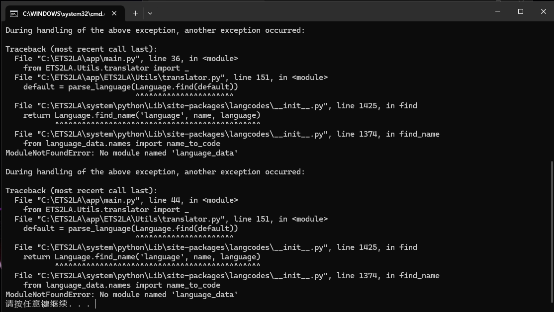 运行软件外方式更新时不要运行ETS2LA,否则可能会出错
