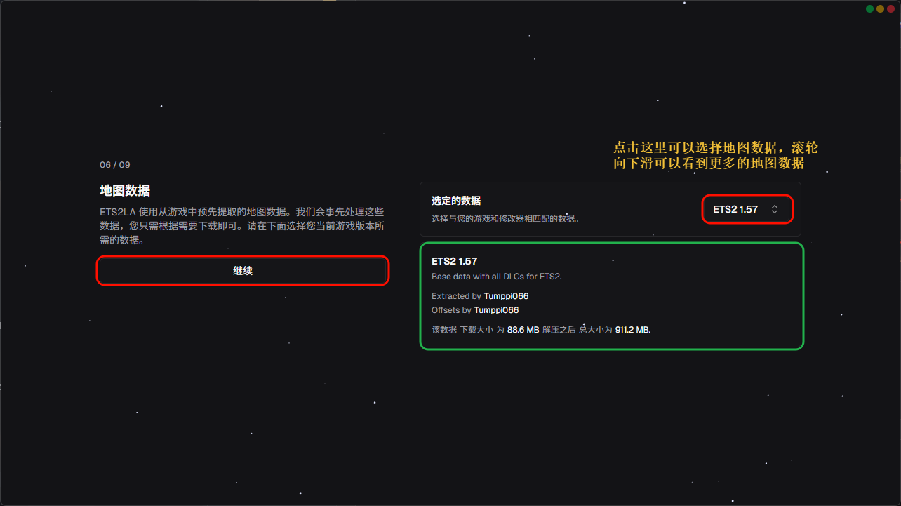 第六页就是选择地图数据;如果你只玩欧卡原版,选择 ETS2/ATS+对应游戏版本的地图数据即可,如果你仍然玩promods,则需要选择 promods+对应版本的地图数据;玩其他地图mod同理
