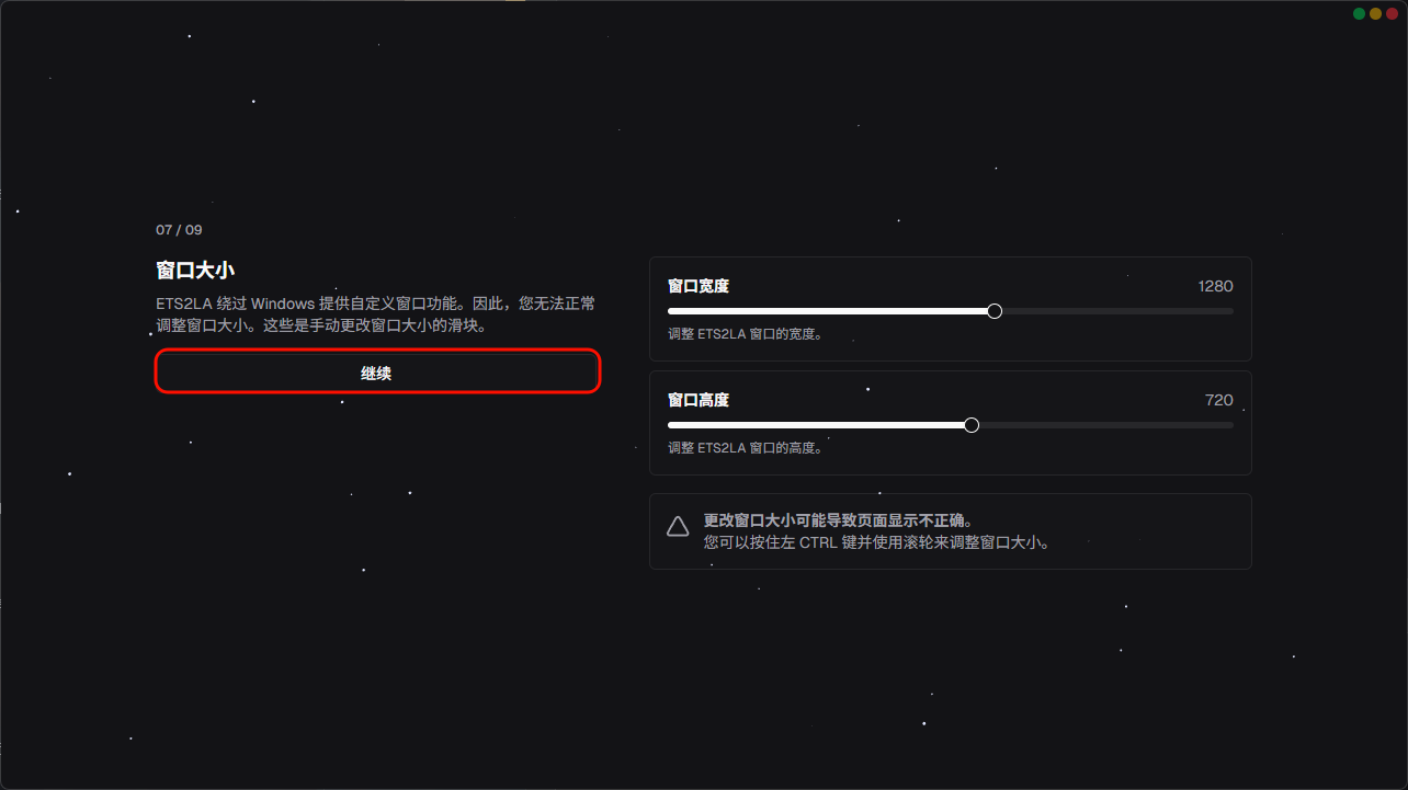 ETS2LA不同于其他软件可以将鼠标放置到窗口边缘拖动来修改窗口大小,ETS2LA并不能这样做,ETS2LA只能通过在设置中修改窗口大小 当将窗口设置的过小时,如想显示所有内容,可通过Ctrl+滚轮来对窗口进行缩放