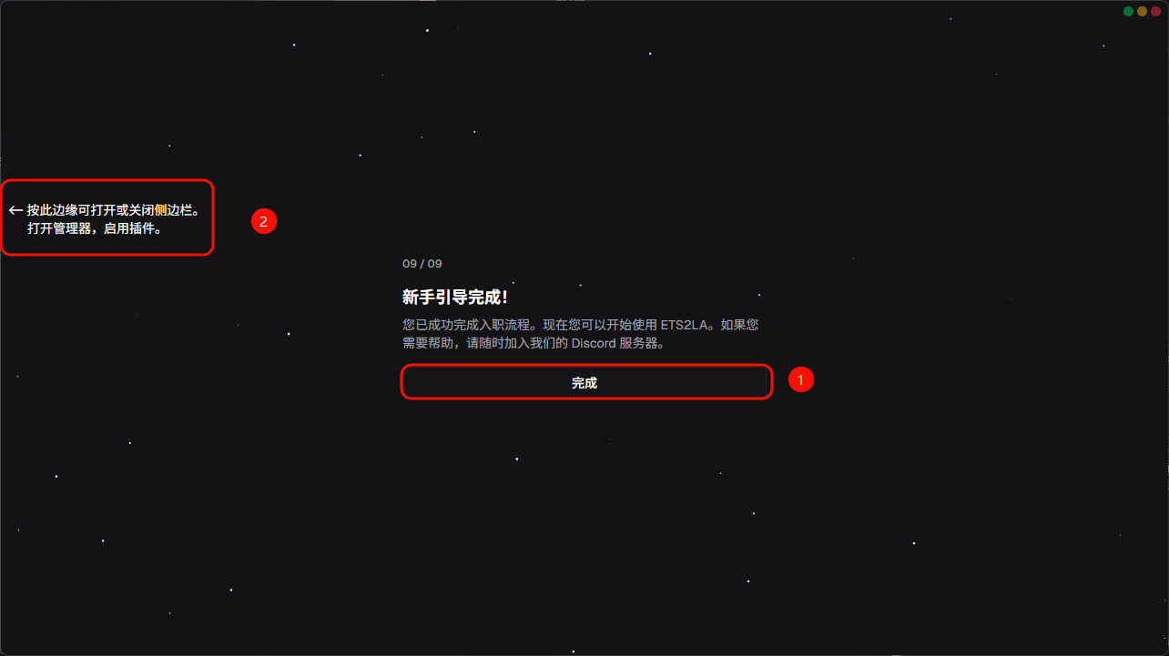 第九页就是一个结束页面,当点击完成之后会提示如何打开左侧的侧边栏
