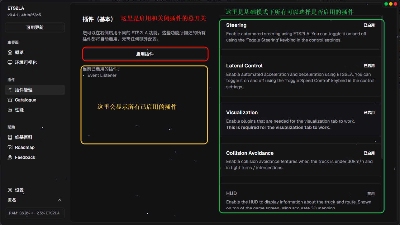 以上就是关于ETS2LA的基础使用教程,如果你想使用插件管理中的高级模式的话,可以前往页面介绍查看;如果你想知道每个插件的作用的话可以前往插件介绍